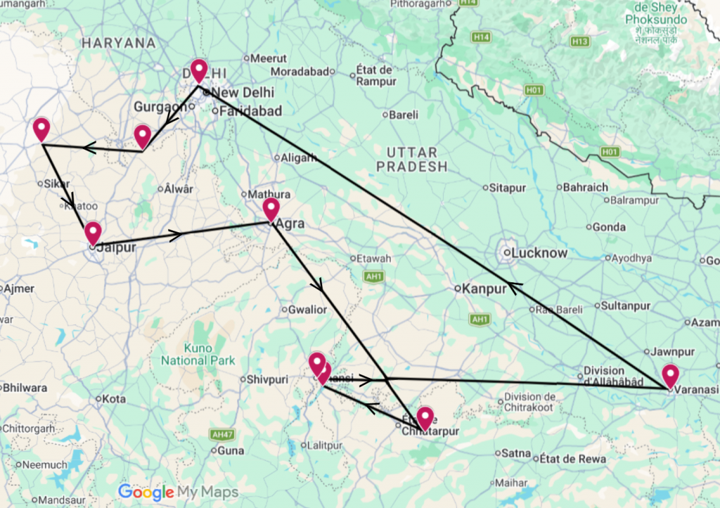 Delhi – Neemrana – Mandawa – Jaipur – Agra – Khajuraho – Orchha – Jhansi – Varanasi – Delhi