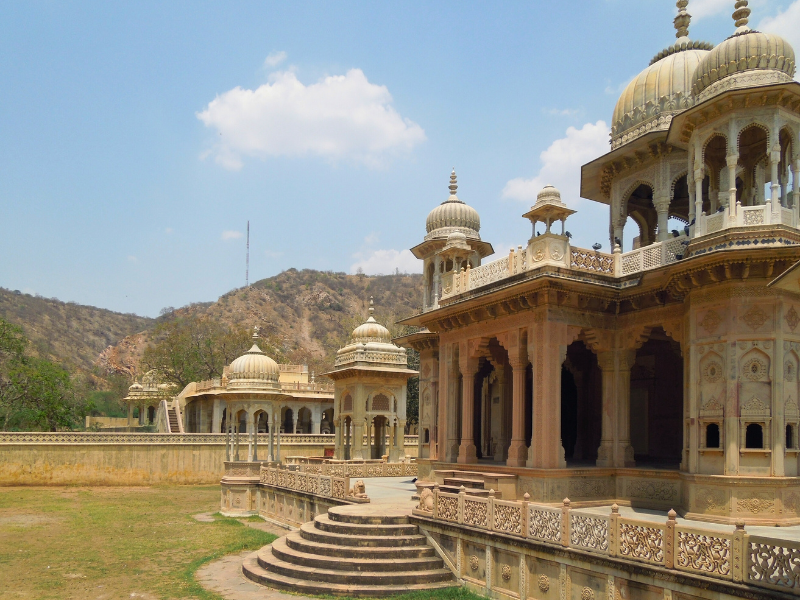 En route vous découvrirez les « Royals cénotaphes de Jaipur ». Comme dans chaque royaume de l’Inde, vous retrouvez un ensemble de bâtiments destinés à commémorer les membres royaux locaux.